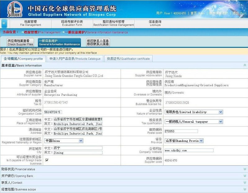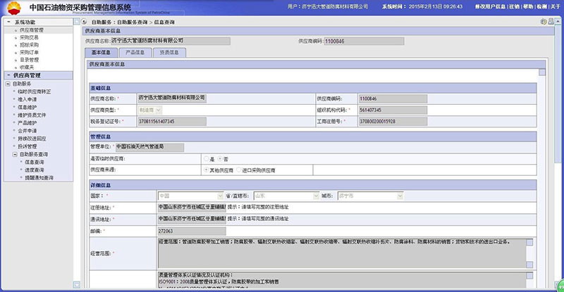中石油入网供应商...